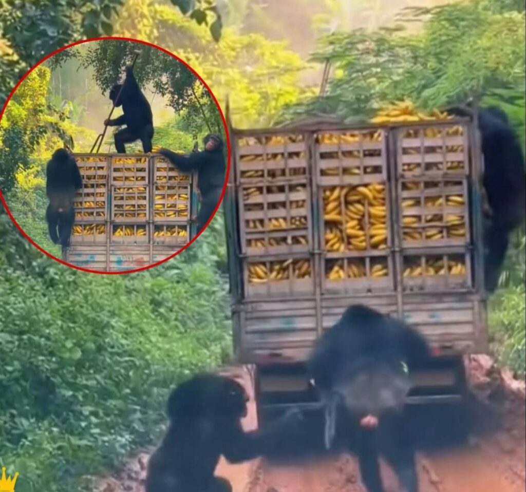 Chimp Gang Ambushes Banana Truck, Locals Call It the “Banana Heist”. In western Uganda’s Kibale Forest, a group of chimpanzees pulled off what locals are calling “the Banana Heist of the year.” Witnesses say the chimps moved with shocking coordination, one stood watch on the road while another climbed the truck with a stick tool, breaking open crates in just the right spots. For the next mile, bananas poured from the back of the truck, where more chimps waited along the road ready to collect them. Officials reviewing the footage said they’d never seen anything like it, calling the ambush “strategic, organized, and oddly impressive.”